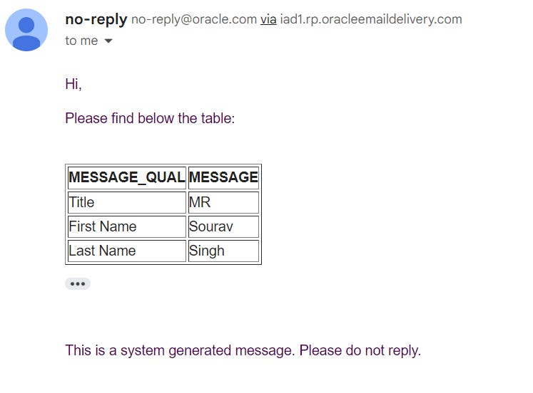 In this blog we will discuss how to create a Table in Email body of OIC, where the rows are dynamically populated. As this is not a functionality that is available out of the box hence we have to write some custom logic for it.