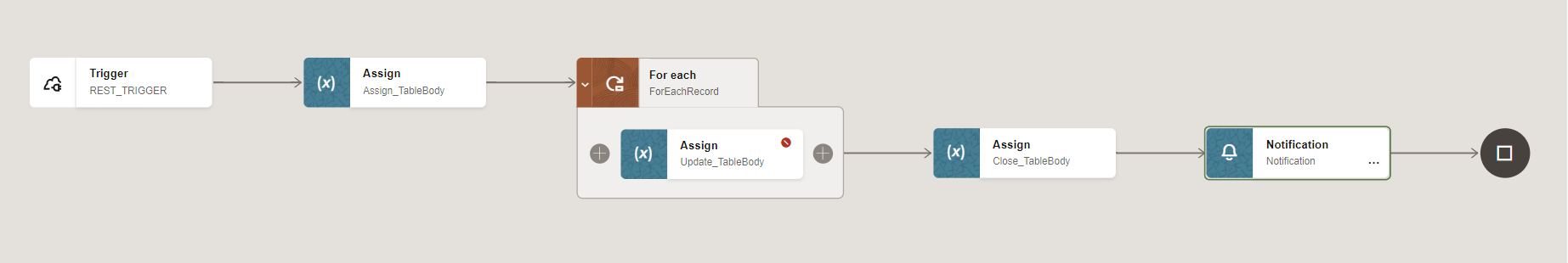 </tr>'Step4: Now we will add a for-each loop in the canvas to iterate over the repeating element.